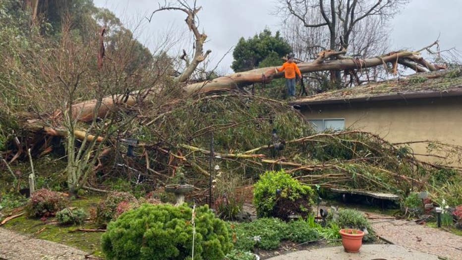 A similar scenario occurred the day before in Castro Valley when a 170-foot-tall eucalyptus tree fell on Deanna Abrew's in-law unit.