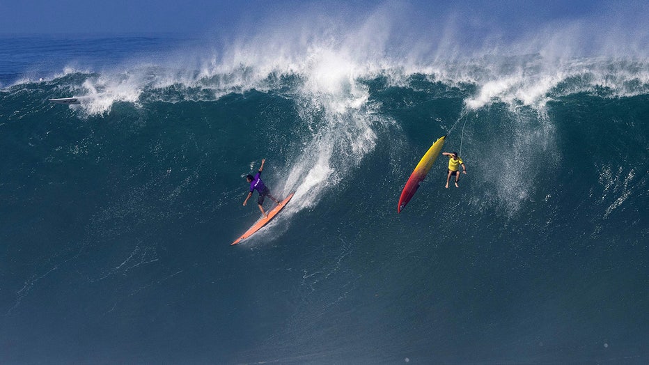 "We’ve been looking at 30-foot to 40-foot wave faces for the most part, (and) the biggest waves of the day are going to be in excess of 45 feet. By local scale, they’ll call those waves 25 feet — and we’ve seen a couple sets like that already," Kevin Wallis, director of forecasting at Surfline.com, said by phone Sunday morning.