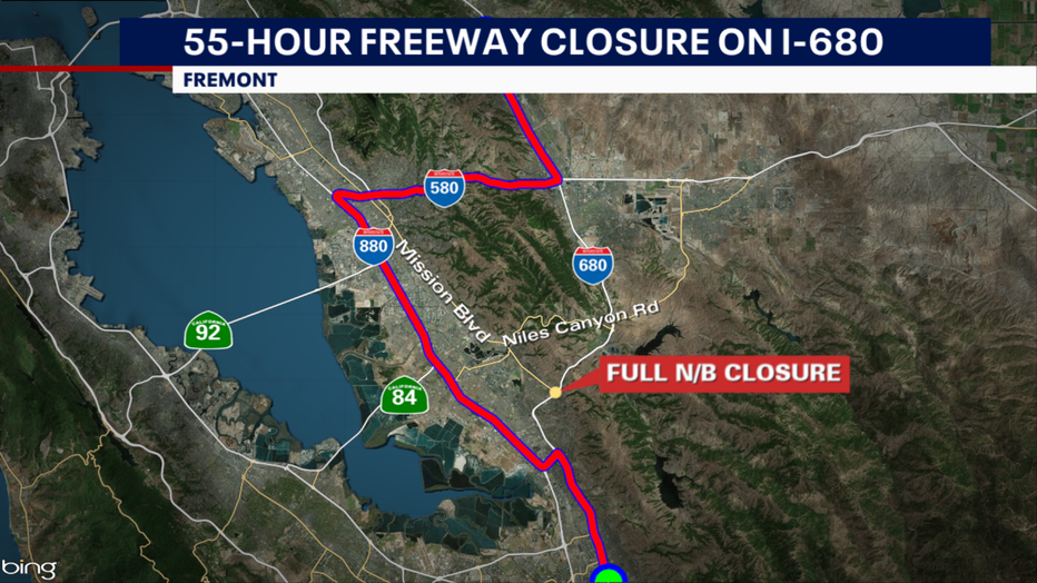 FREMONT, Calif. - Drivers should prepare for the closure of part of Interstate 680 in Fremont for the entire weekend.