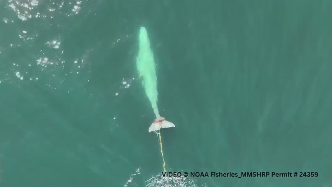 Anyone who sees the whale or another entangled animal is asked to call NOAA's hotline at 1-877-SOS-WHALE.