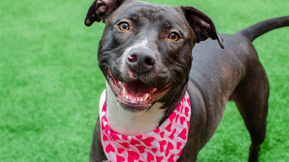 Juni is a 1-year-old neutered, pit-bull mix. She's part of the Peninsula Humane Society & SPCA Valentine's adoption special. (Peninsula Humane Society & SPCA)