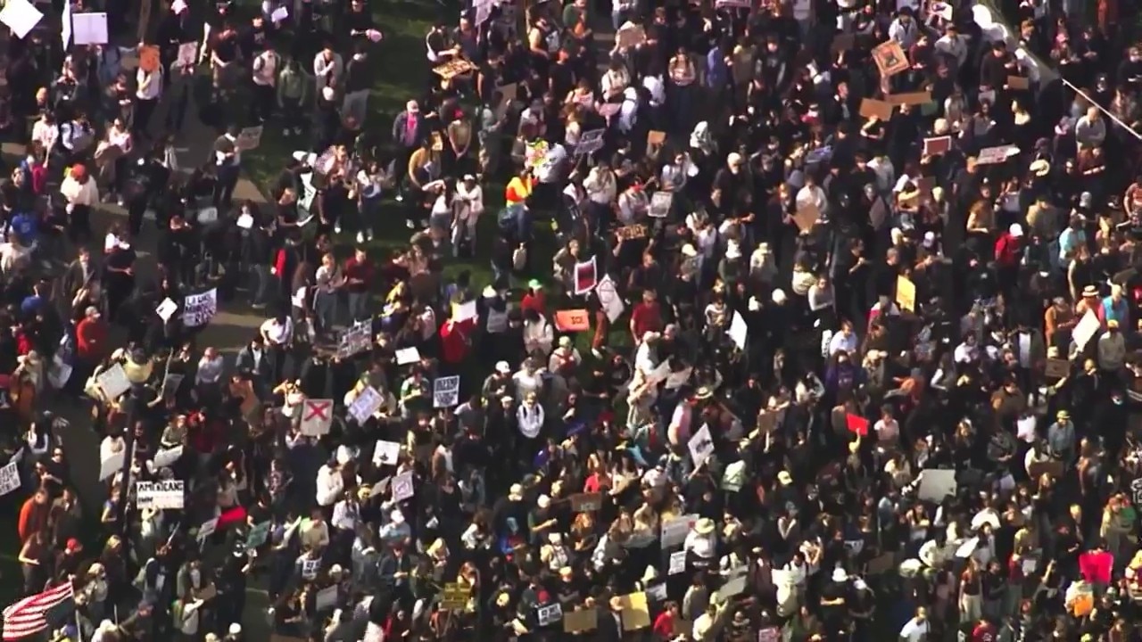 About an hour later, that rally began to morph into a march as people started to fill Dolores Street. They then marched up Market Street, making their way to Civic Center Plaza. A few thousand people then gathered for another rally in front of San Francisco City Hall.