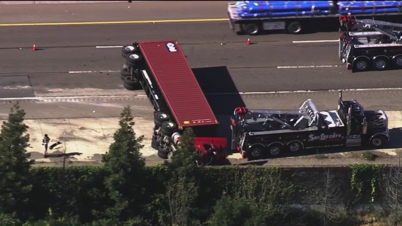 HAYWARD, Calif. - A big rig overturned following a crash on Interstate 238 in an unincorporated part of Alameda County on Monday, officials say.