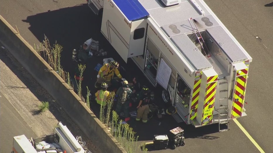 The fire department said all lanes were expected to reopen by 5:30 p.m. Around 6:30 p.m. the department said they had begun to clear the scene and that the chemical containers had been safely removed and that the spilled chemicals had been neutralized. The Mountain View Fire Department assisted in these efforts.