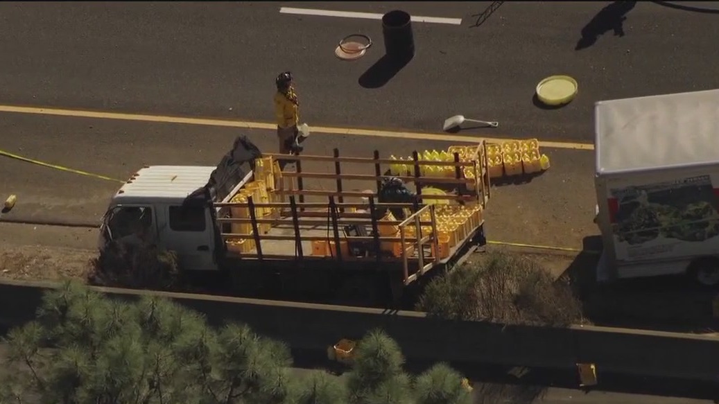 The spill affected traffic lanes into the evening. The California Highway Patrol assisted with traffic and the scene has since been handed off to CHP and Caltrans officials, the fire department said in an update.