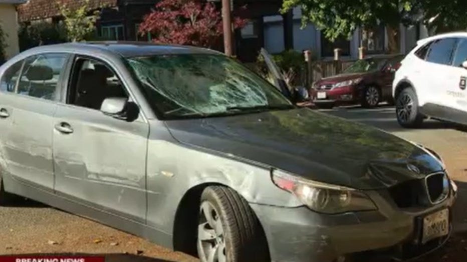 The BMW left at the scene of multiple Berkeley hit-and-runs. Sept. 16, 2025