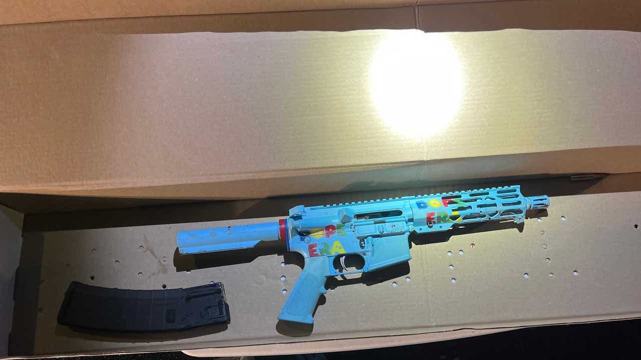 Officers developed probable cause to search the vehicle and discovered a loaded, high-powered rifle, police said.