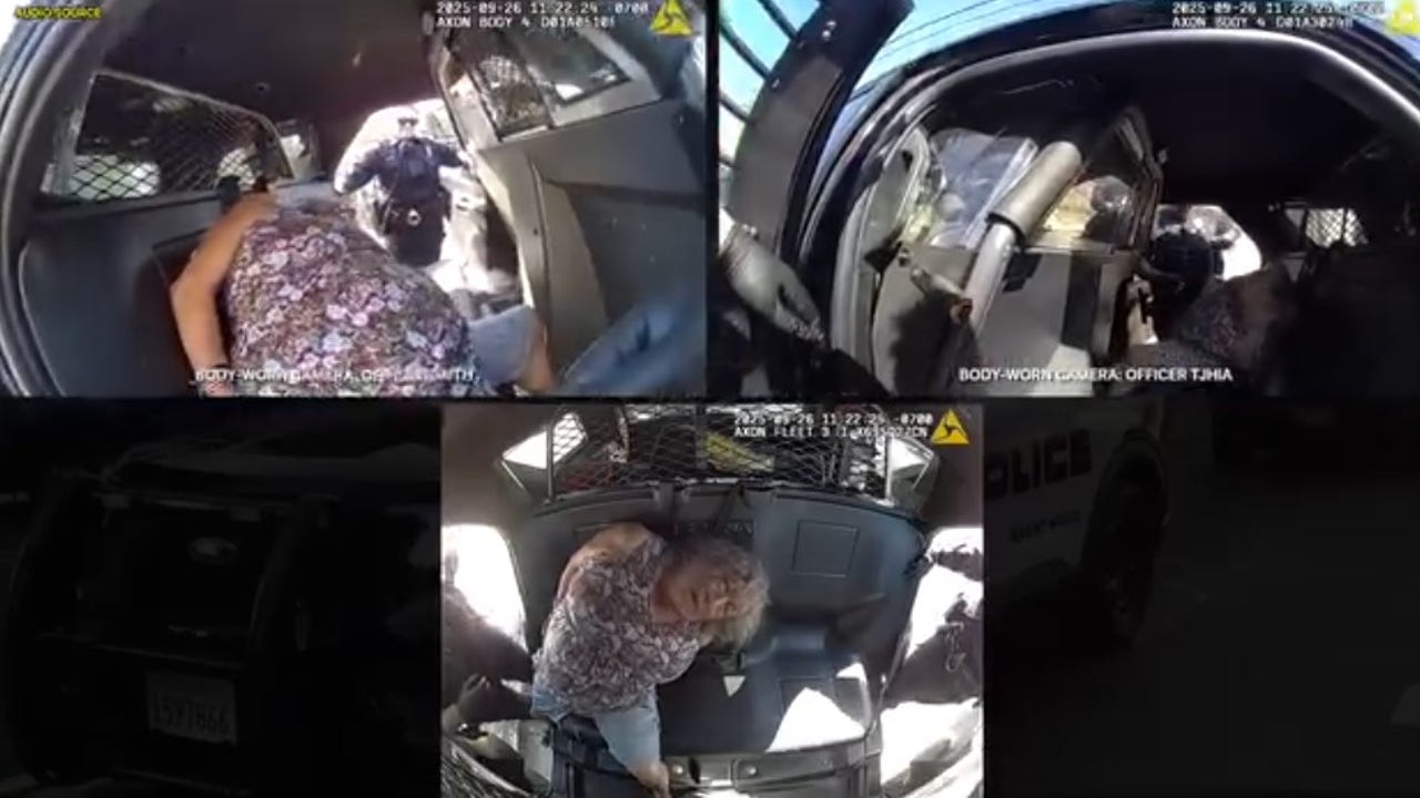 BRENTWOOD, Calif. - Brentwood police on Friday released body camera footage and audio of the arrest of a 72-year-old woman a week before she died at a hospital.