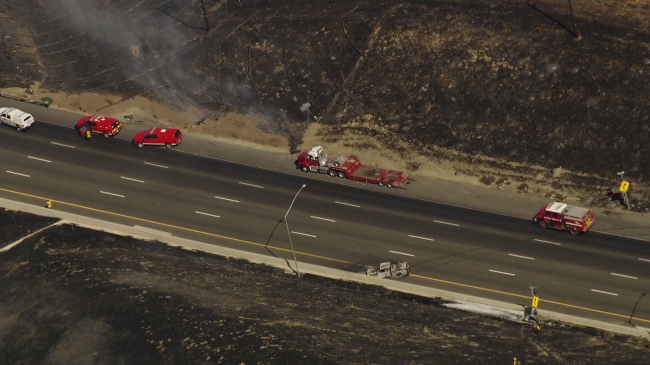 Authorities said the vehicle caught fire along eastbound Interstate 580 east of Grant Line and Midway roads in Livermore.