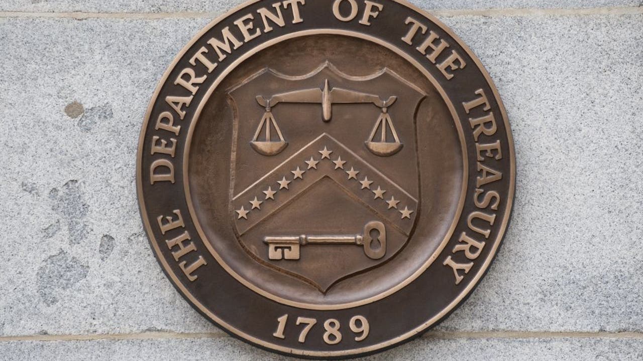 The seal of the US Treasury Department is seen on the outside of the Treasury building in Washington on August 19, 2011. AFP PHOTO/Saul LOEB / AFP PHOTO / SAUL LOEB (Photo credit should read SAUL LOEB/AFP via Getty Images)