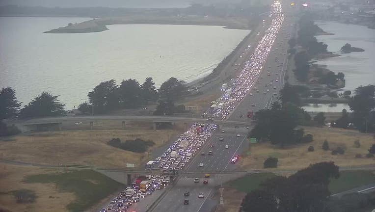 OAKLAND, Calif. - California Highway Patrol in Oakland confirms the backup on Interstate 80 at Powell Street Wednesday evening was because of a vehicle versus pedestrian collision that involved Contra Costa County Sheriff's Department.