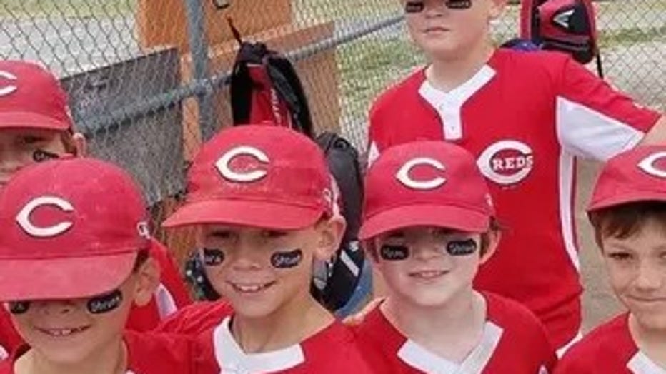 Everett Zellmer's little league teammates wearing "Laura Strong" eye black.