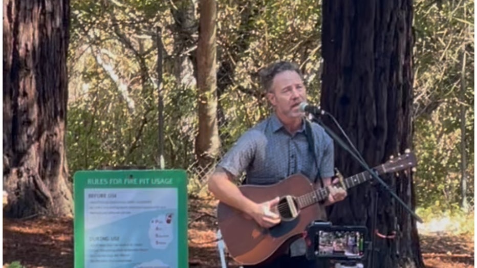 Zach Rogue sings at Laura Zellmer's celebration of life on Saturday, Sept. 13, 2025 in Moraga, Calif.