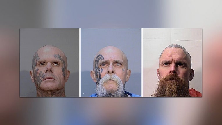 Todd J. Givens (left), Robert England (center) and Ray N. Waldron, all serving life sentences, are accused in the death of another inmate at Salinas Valley State Prison.