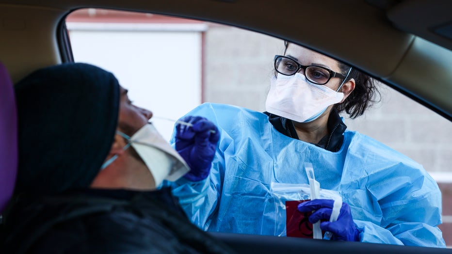 FILE - A medical worker administers a swab to a person getting tested for COVID-19 on Dec. 30, 2020 in Parker, Colorado. Michael Ciaglo/Getty Images (Michael Ciaglo/Getty Images)