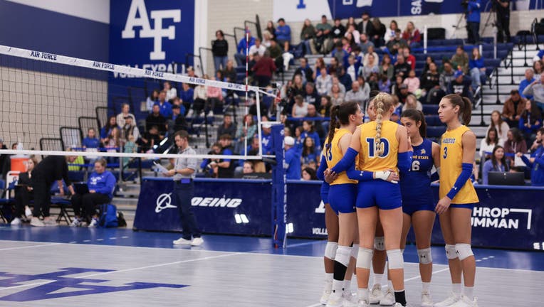 COLORADO SPRINGS, COLORADO - OCTOBER 19: San Jose State Spartans players huddle during the first set against the Air Force Falcons at Falcon Court at East Gym on October 19, 2024 in Colorado Springs, Colorado. (Photo by Andrew Wevers/Getty Images)