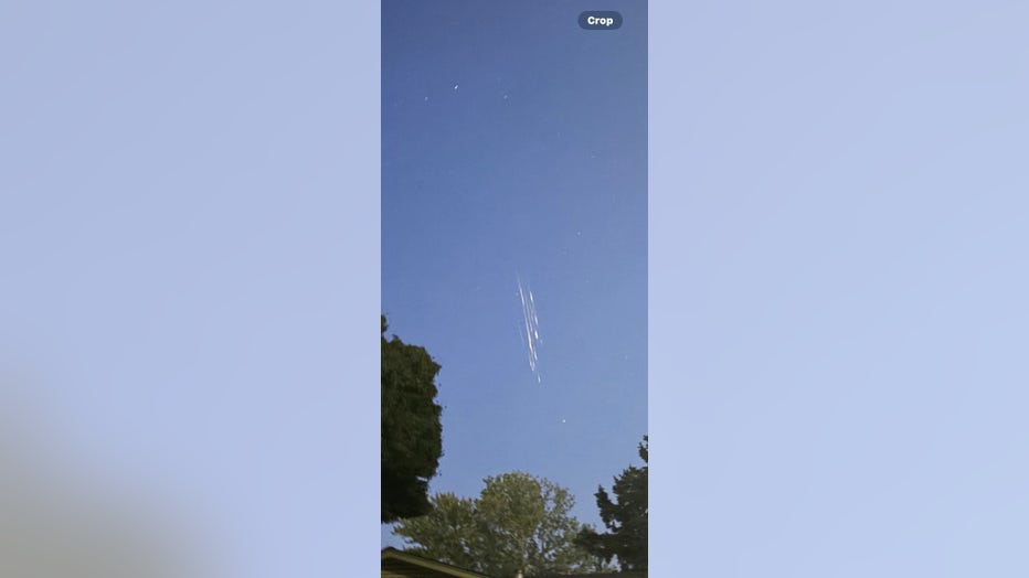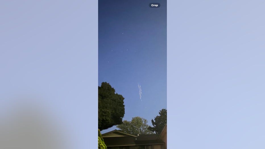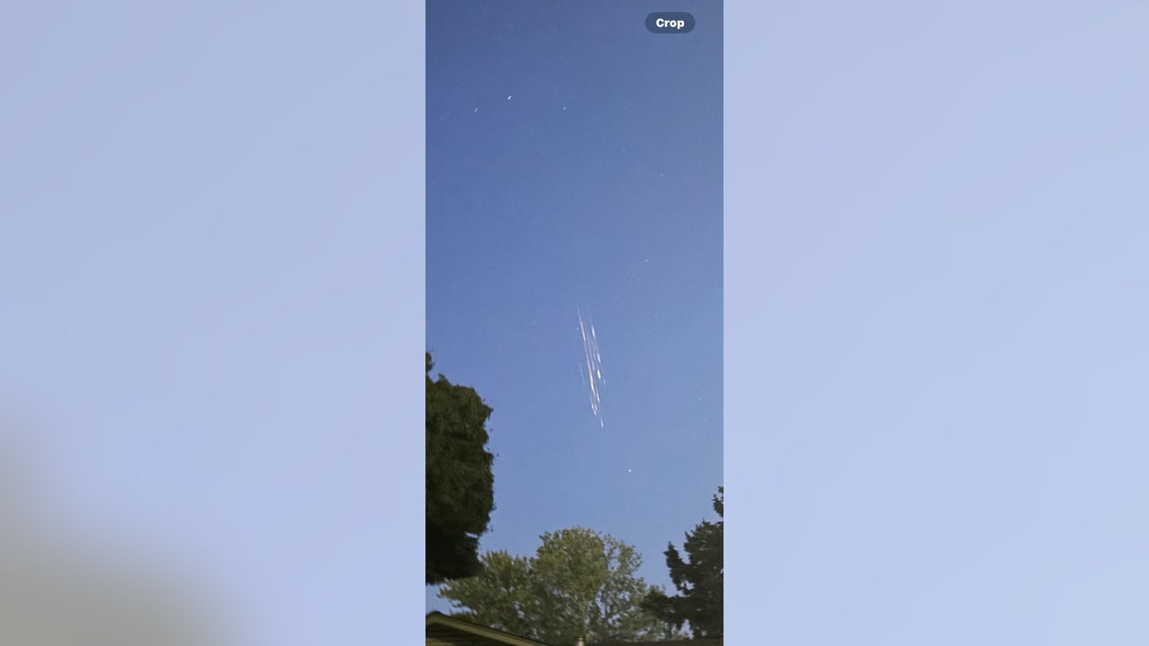 Video came in from Rebecca Dominguez in Brentwood. She saw the streak around 8 p.m. In the video, the light streaking brilliantly across the sky at what appears to be a high rate of speed is then zoomed in on, and you can see how the light has scattered and broken up into multiple pieces.