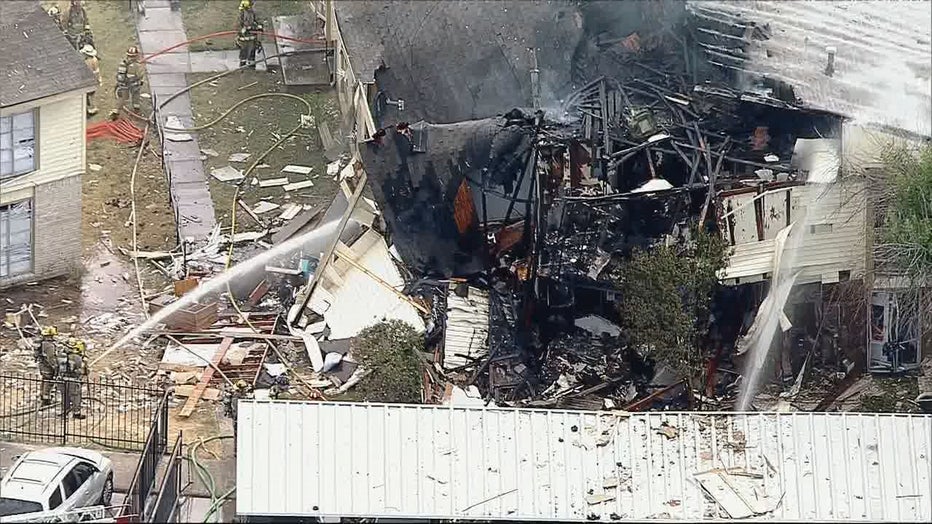 While investigating, firefighters say there was an explosion and fire that badly damaged the two-story apartment building.