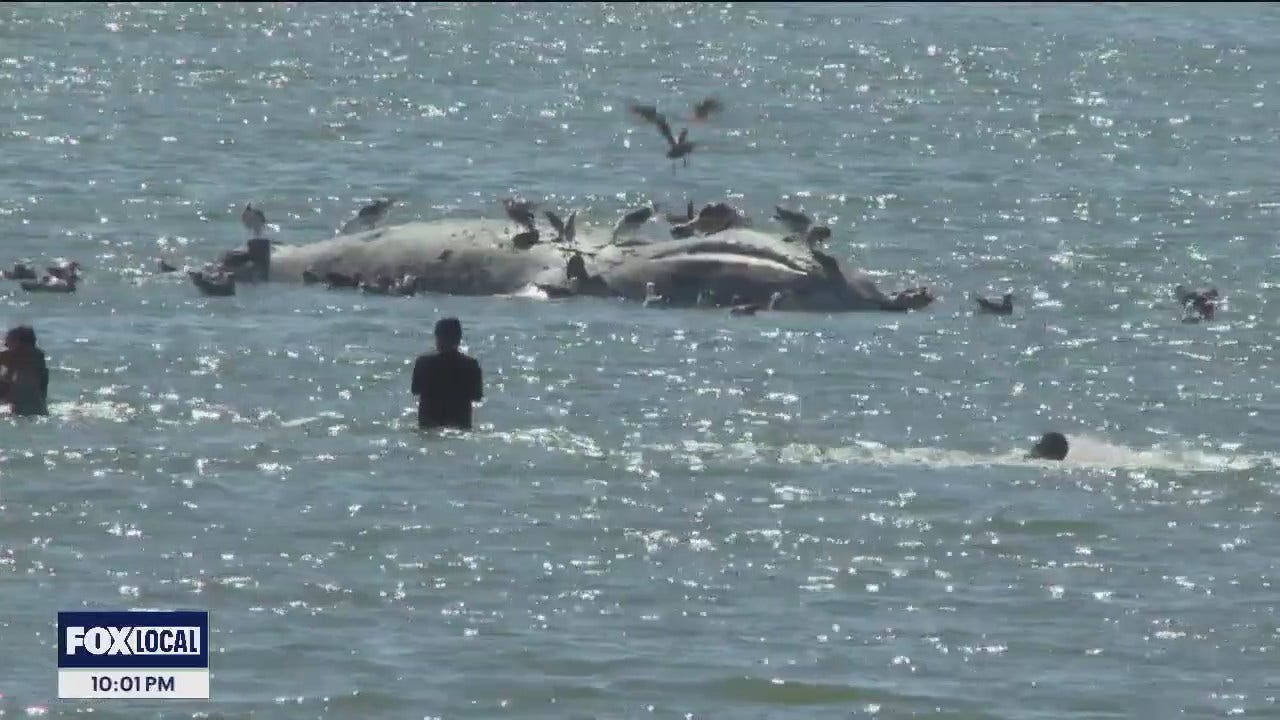ALAMEDA, Calif. - Beachgoers in Alameda were met with a sad and unpleasant sight Sunday after a dead Gray Whale was spotted off Robert W. Crown Memorial State Beach.