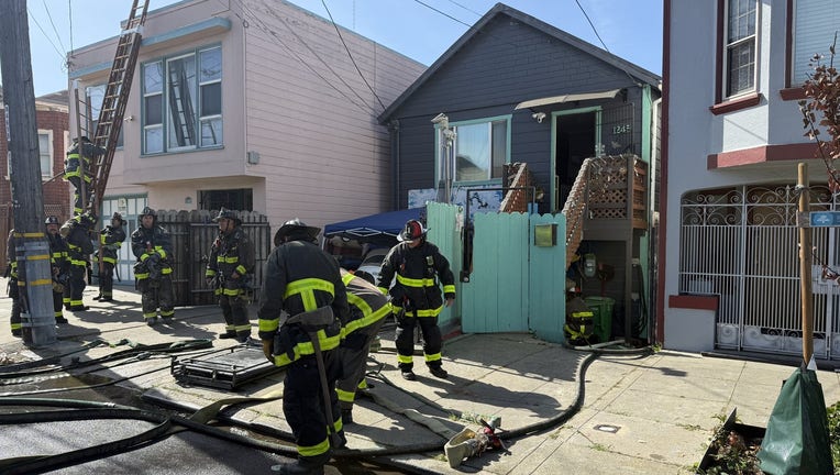 SAN FRANCISCO - One dog died and two others were rescued with injuries after a suspected garage fire broke out at a residence in San Francisco's Bret Harte neighborhood Sunday morning.