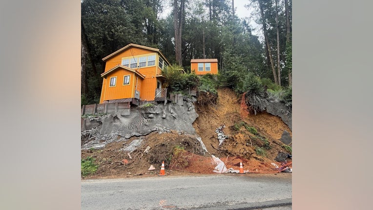 The sheriff's office posted a dramatic photo of a house on the edge of a cliff just after 5 p.m. on Monday.