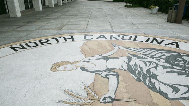 UNITED STATES - MAY 9 - The great seal of North Carolina is seen outside the state legislature building in Raleigh, N.C., on Monday, May 9, 2016. Gov. Pat McCrory and his administration sued the federal government Monday in a fight for a state law th