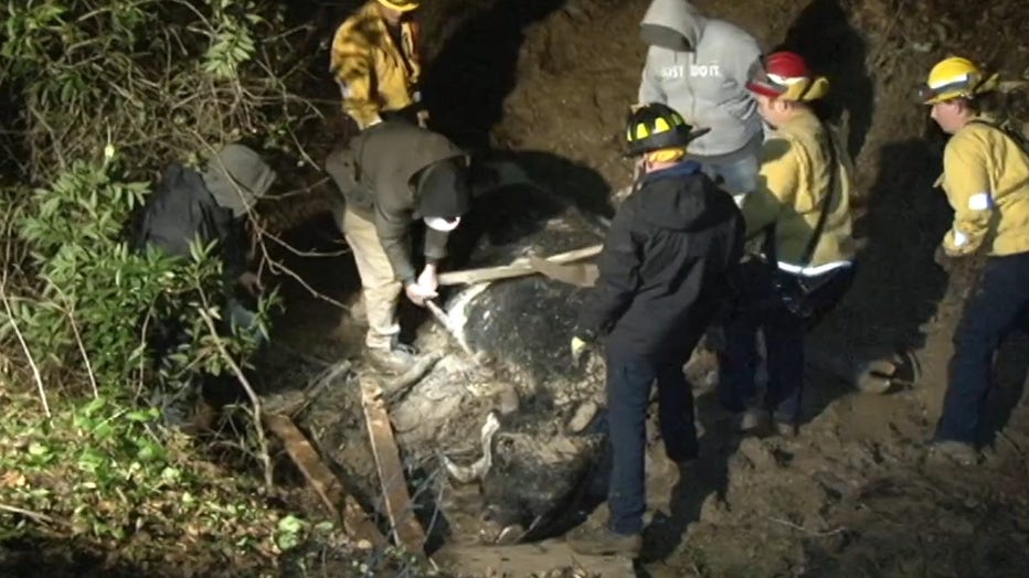 "We were able to get Bob the cow out of the ravine," Stewart said. "And we're hopeful that he can make a recovery."