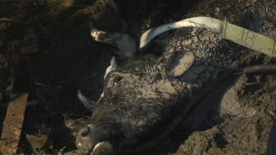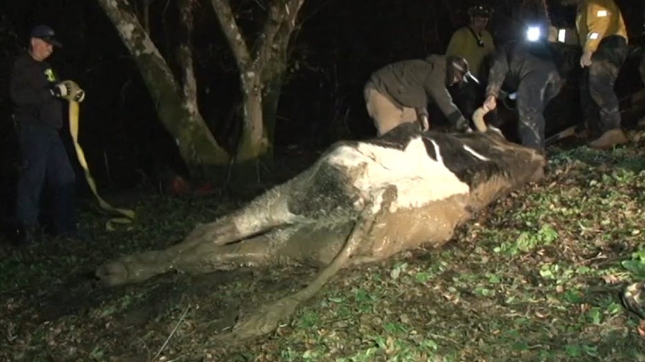 "It's not often that this happens," Stewart acknowledged. "Sometimes you've got to work at different angles. Cows act a little differently than when you're rescuing a person. Two thousand pounds of weight is a lot to move around."