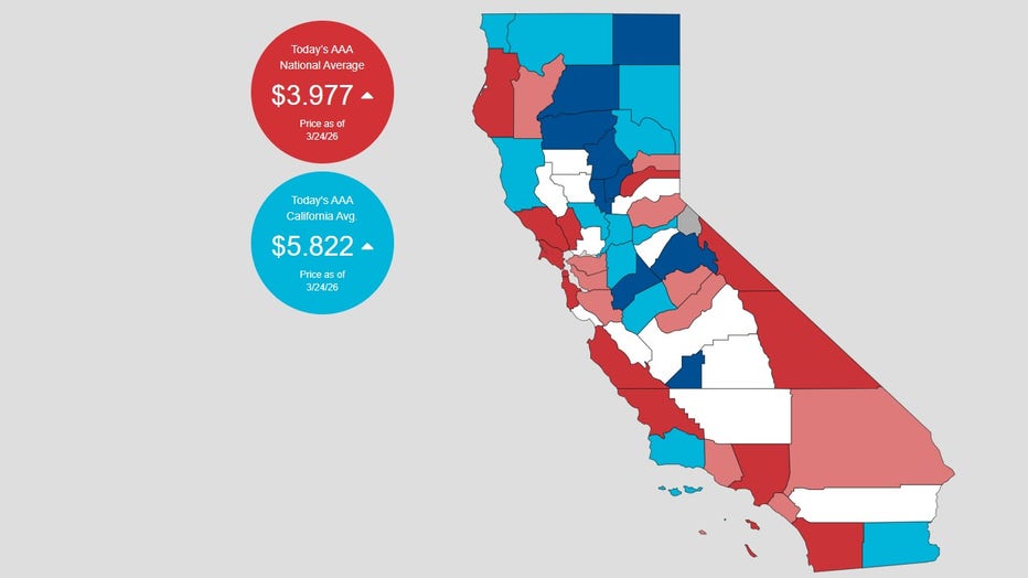 That price is roughly double what the national average is. AAA said the average price of gas was $3.97 a gallon as of Tuesday, and the average price in California was $5.82.