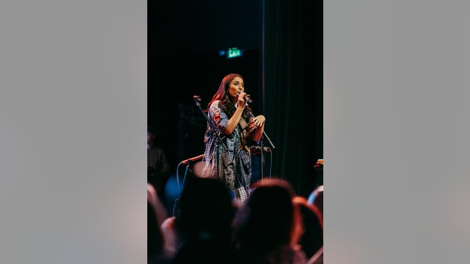 Astrid Jorgensen on stage for Pub Choir at the Regency Ballroom in San Francisco on Monday, April 27, 2026. (Kristina Wild )