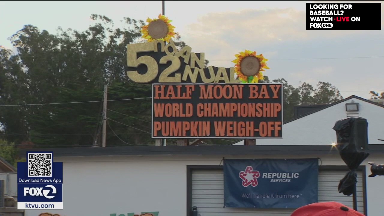The Safeway Half Moon Bay World Championship Pumpkin Weigh-Off kicked off the pumpkin festival in the city by the coast on Monday. This year's winner hails from Santa Rosa. Last year's winner is back this year, but he doesn't have a pumpkin this time.