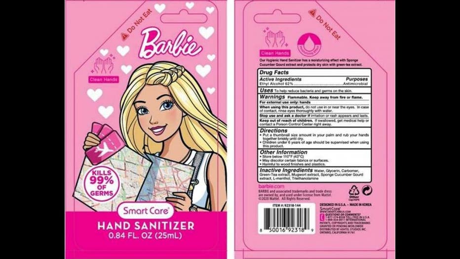 The hand sanitizers, which were marketed with children's' characters including PAW Patrol, Hot Wheels, Barbie, Trolls JoJo Siwa and Minions, were being sold under the brand name of Smart Care.