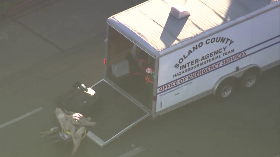 The Solano County Hazardous Materials Team was dispatched to the scene where they remained while working to identify and contain the material.