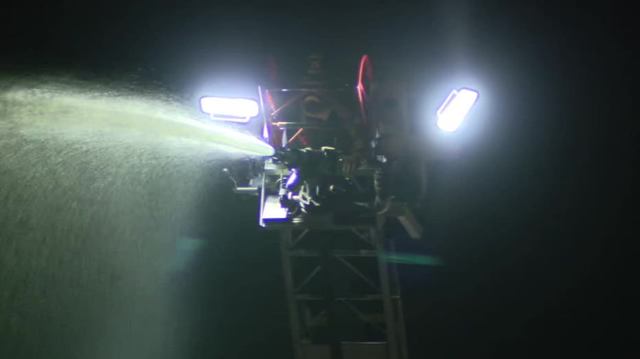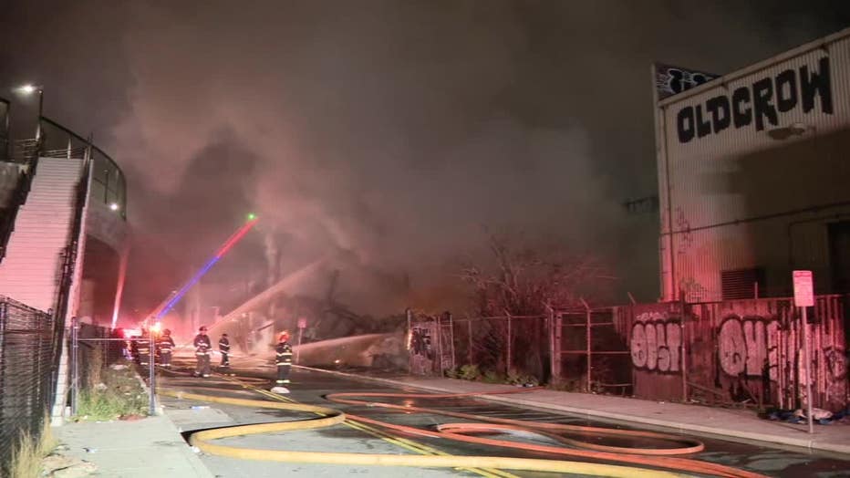 When a KTVU crew arrived, Berkeley firefighters were spraying the building with water, and the warehouse looked completely destroyed.