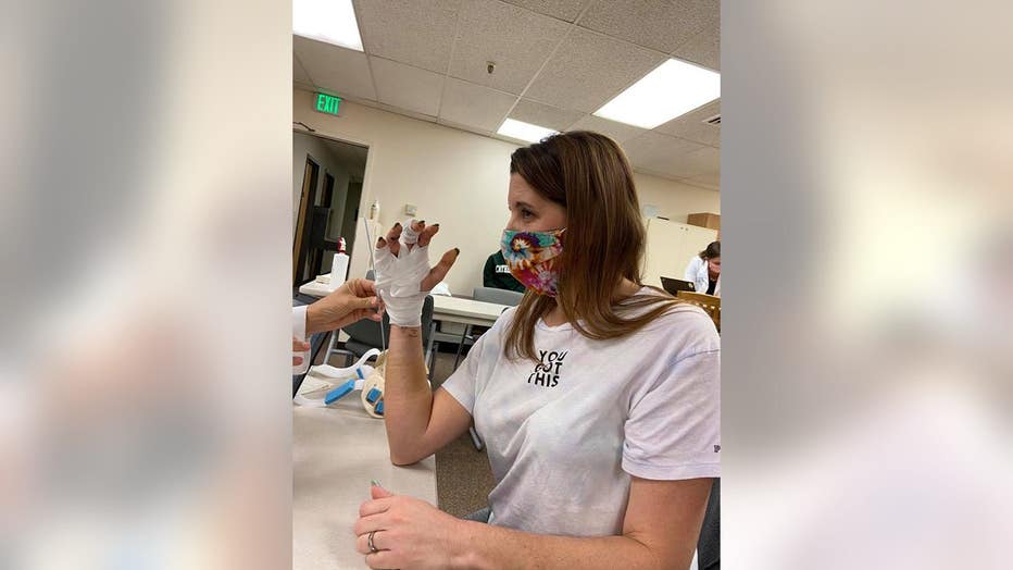 Anema's family called 911 and she was rushed to the hospital. She said the injury was so bad that doctors spoke with her husband and considered amputation. Fortunately, they were able to save the hand, along with all of the fingers.
