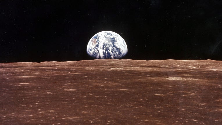 376713 11: (FILE PHOTO) A view of the Earth appears over the Lunar horizon as the Apollo 11 Command Module comes into view of the Moon before Astronatus Neil Armstrong and Edwin Aldrin Jr. leave in the Lunar Module, Eagle, to become the first men to