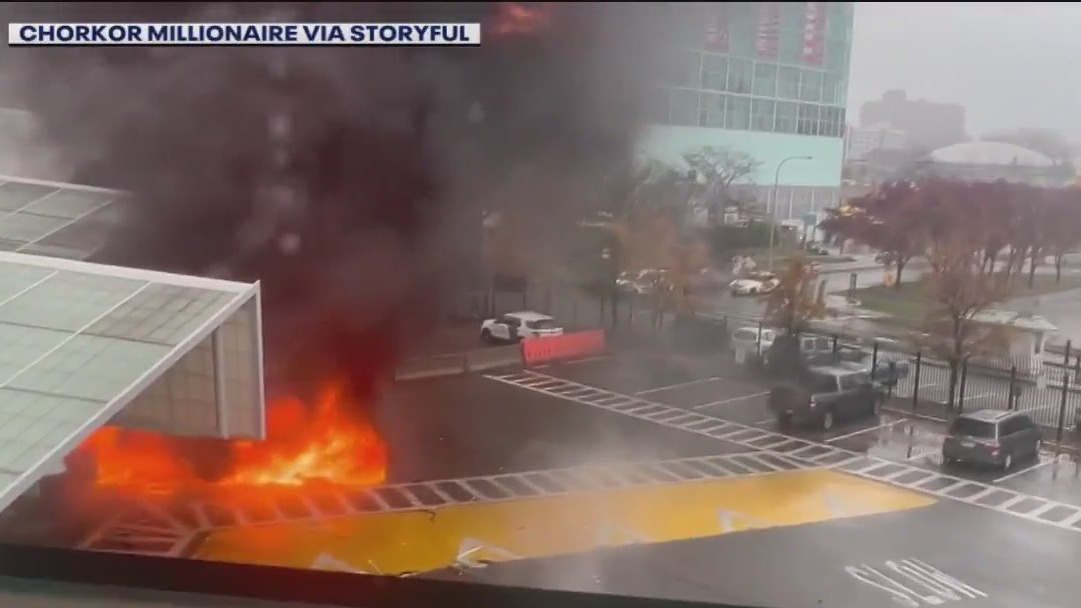 Hochul says the car was incinerated, with nothing left but the engine and debris across about a dozen booths at the checkpoint where the driver crashed.