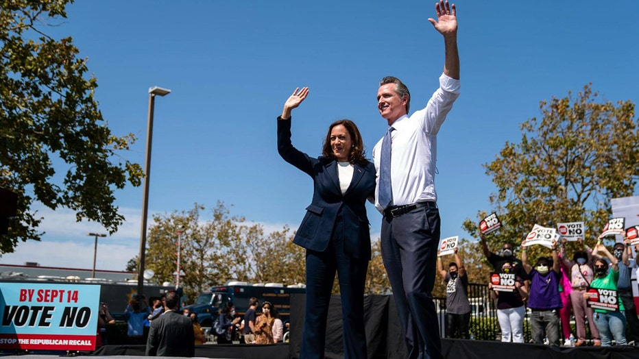 Vice President Kamala Harris joins California Governor Gavin Newsroom at a rally against the upcoming gubernatorial recall election at the IBEW-NECA Joint Apprenticeship Training Center on Wednesday, Sept. 8, 2021 in San Leandro, CA.(Kent Nishimura /