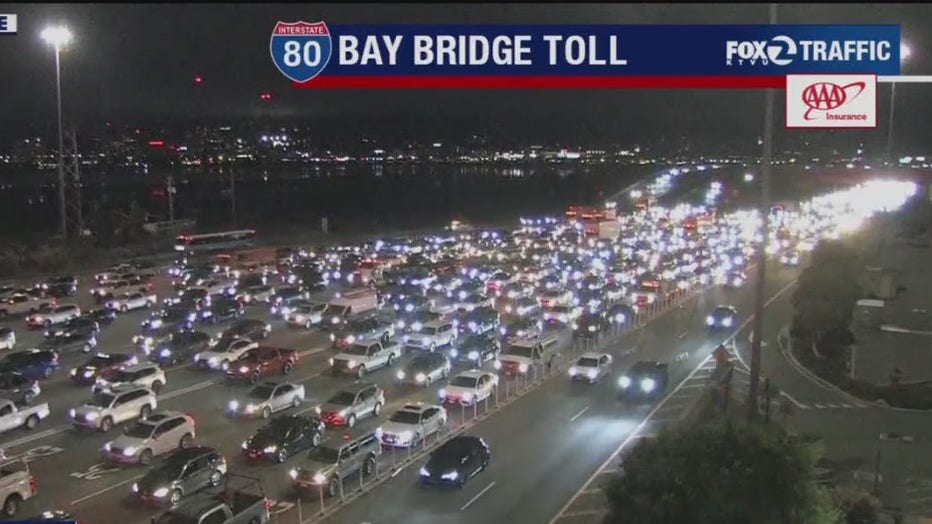 Here's what traffic looks like approaching the Bay Bridge toll plaza since no BART trains are running. Sept. 5, 2025