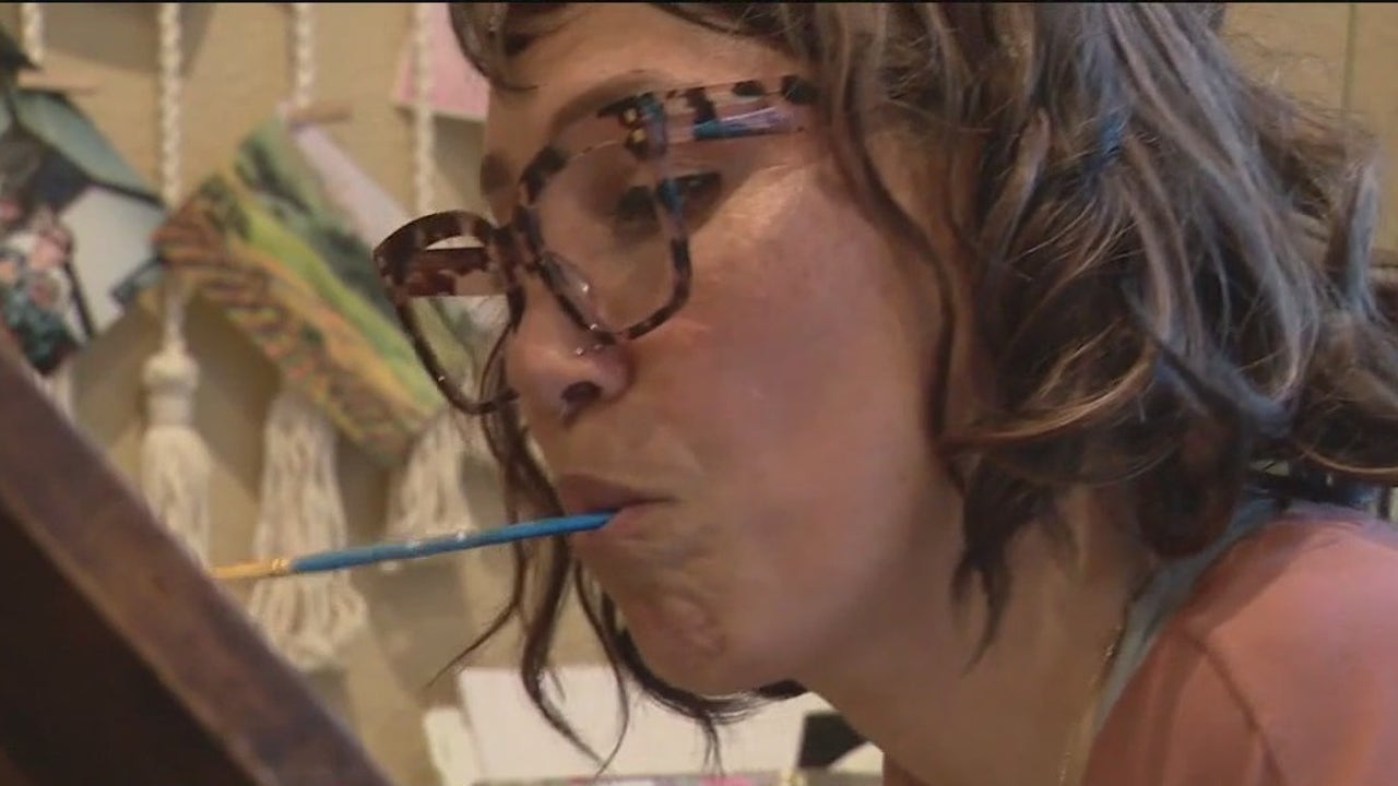 SONOMA COUNTY, Calif. - A Sonoma County artist is gaining attention for her impressionistic landscapes, and her technique, using only her mouth and feet to paint.