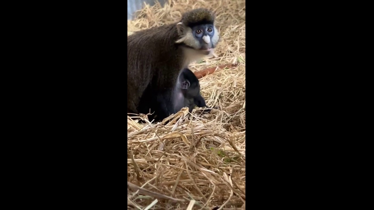 The male infant was born earlier this month to resident red-tailed guenons mom Nonami and dad Marley. Baby and mom are doing great, according to the zoo.