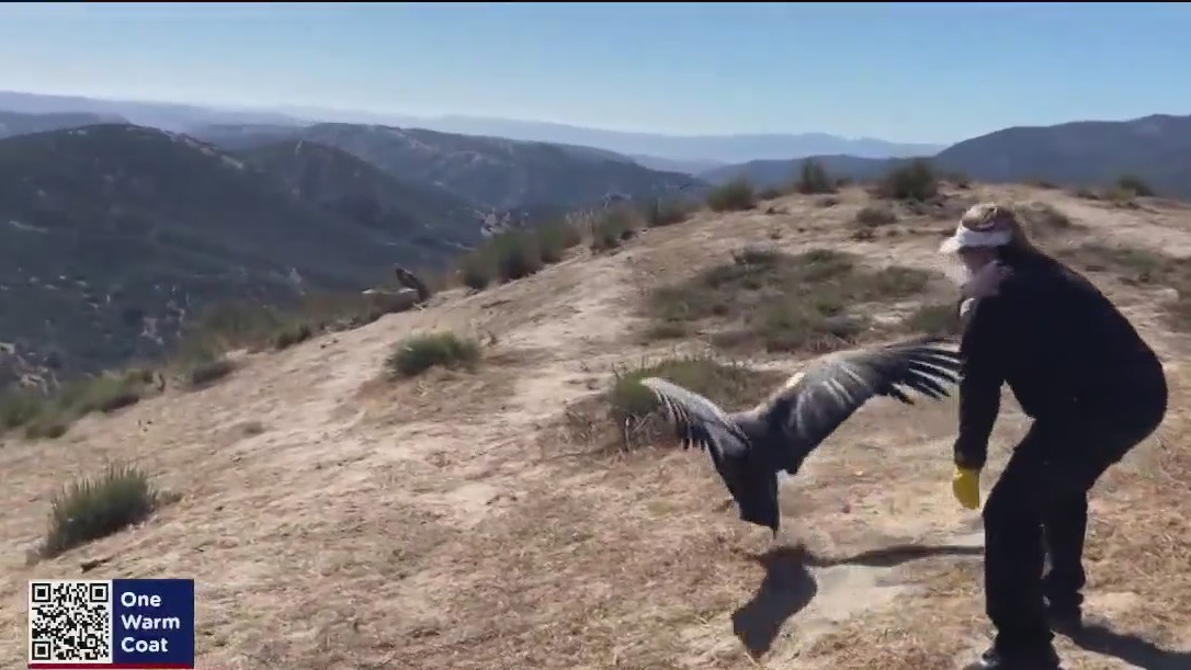One of Oakland Zoo's hospital keepers, Nikki, is seen on video releasing a condor back into the wild after the bird passed her check-up.