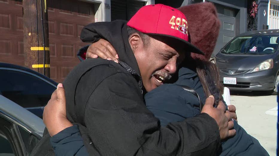 Anthony Thomas hugs his sister after he said his 24-year-old son killed himself. Jan. 1, 2025