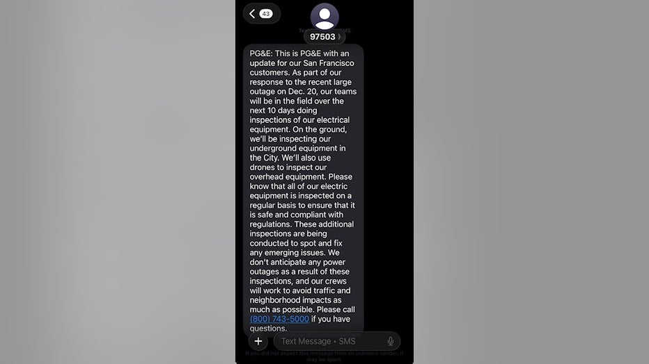 The text read that as part of PG&E's response to that particular outage that they would have crews working in the field over the next 10 days to inspect underground electrical equipment in the city.