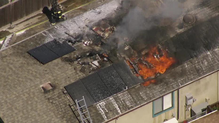 Officials with the San Jose Fire Department said their firefighters responded to the 4200 block of Vistapark Drive on calls of a structure fire. The fire department said the first alarm was dispatched at 2:52 p.m. Officials said the fire was between two homes. One of the homes and its garage was damaged. The other home only saw exterior damage, fire officials said.