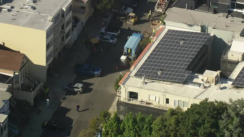SkyFox flew over Cumberland and Church streets in San Francisco after construction crews hit gas line. Oct. 17, 2025