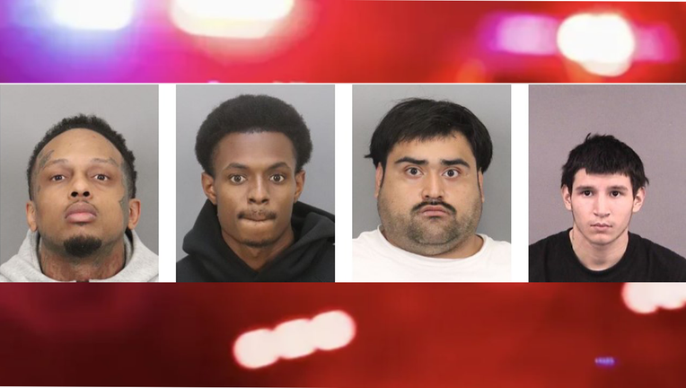 San Jose police identified the suspects as (L-R) Devin Hairston, 31, of Oakland; Charlie Jones, 23, of Oakland; Emilio Sanchez, 24, of Hayward; and Roman Camarena, 18, of Stockton.