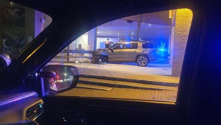 Officers were sent about 12:20 a.m. to the intersection of Mt. Diablo Boulevard and Moraga Road on reports of the crash and found an SUV slammed into the building. (Lafayette Police Department)