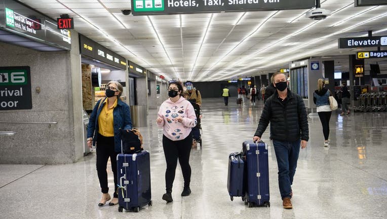 FILE - Travelers walk through Washington's Dulles International Airport in Dulles, Virginia, on November 24, 2020. (NICHOLAS KAMM/AFP via Getty Images)
