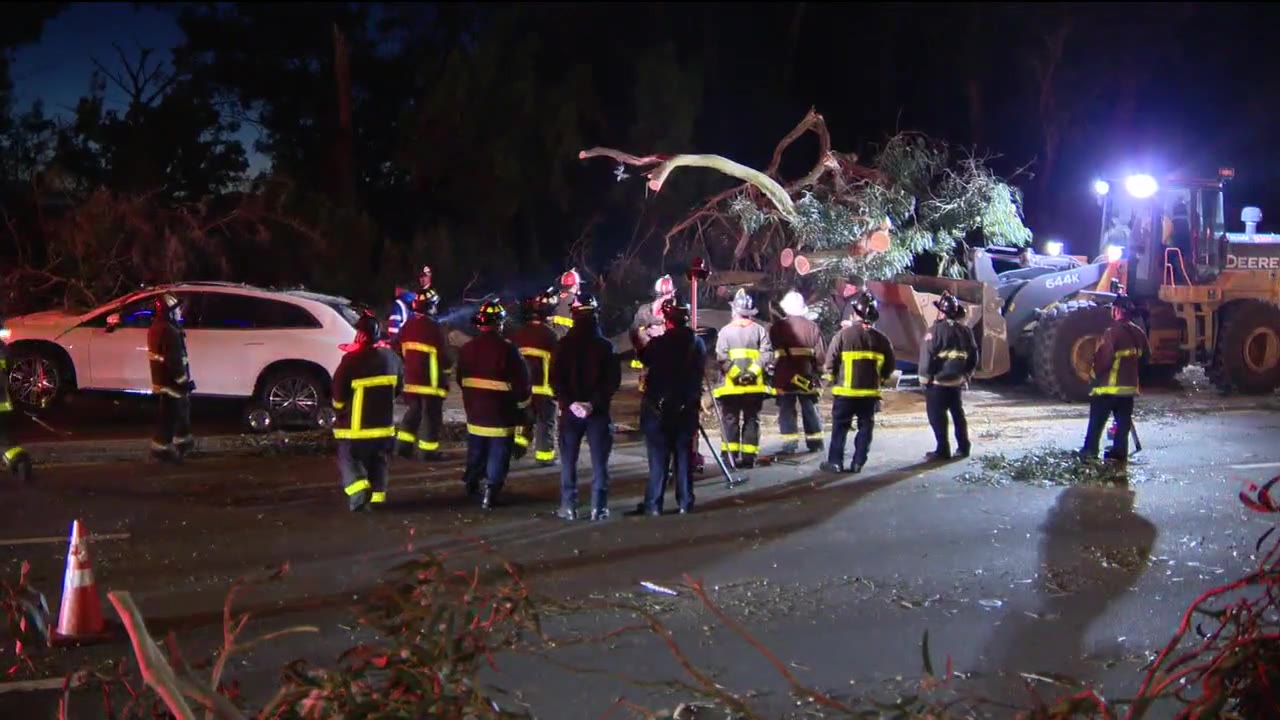 Crews are working to remove a tree from vehicles in San Francisco's Golden Gate Park. January 15, 2024.